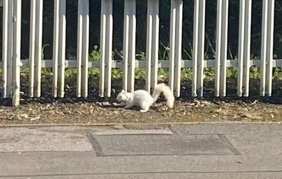 Ein extrem seltenes weißes Eichhörnchen wurde an einem Bahnhof im Vereinigten Königreich gesichtet.