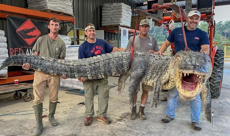 Das Mississippi Department of Wildlife, Fisheries, and Parks teilte mit, dass vier Jäger in dem Bundesstaat - Tanner White, Don Woods, Will Thomas und Joey Clark - den männlichen Alligator am Samstag inmitten der laufenden Alligatorjagdsaison gefangen haben.