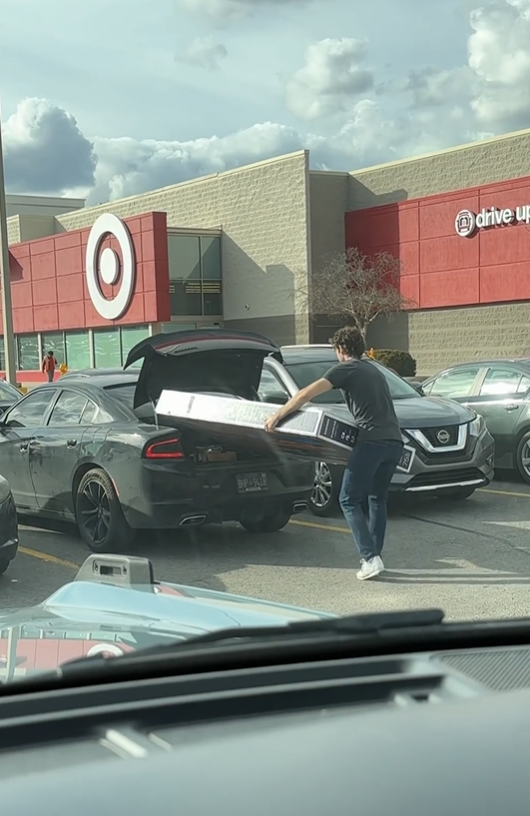 Kurzerhand packt der Mann den übergroßen Fernseher und legt das Gerät einfach auf den hinteren Teil des Autos und versucht den Fernseher ohne Sicherung zu transportieren. Ob er sein neues TV-Gerät ohne Unfall nach Hause transportierte, ist unklar.