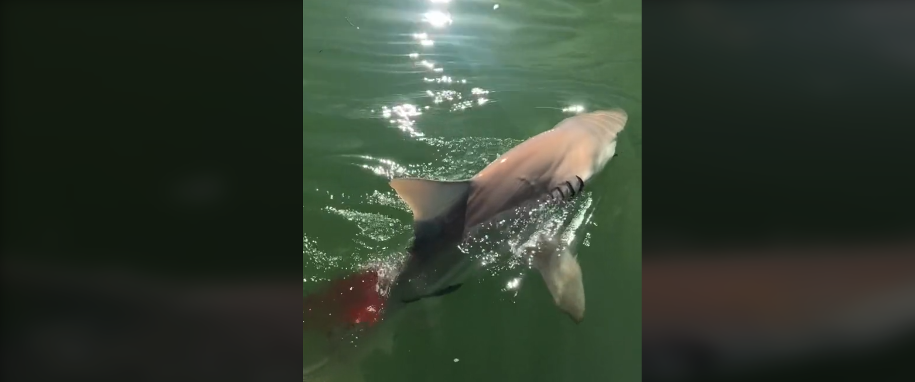 Erschreckendes Filmmaterial hat den Moment festgehalten, in dem eine verängstigte Fischermannschaft einen zwei Meter langen Hai hochzieht, nur um festzustellen, dass er halb gefressen wurde. Im Video des Fangs wird der Hai an die Oberfläche gezogen, wo deutlich wird, dass er eine blutige Verletzung auf dem Rücken hat.