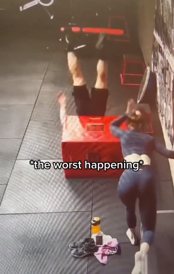Tristan Isaiah versucht bei seinem Training im Fitness-Studio vor einer Frau sehr professionell zu wirken. Doch sein Versuch, einen Würfel als Gerät zu nutzen, geht nach hinten los.
