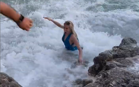 Ein Fotoshooting verwandelte sich für das Model Kate Loshkareva, alias "Russian Kate" auf Instagram, in einen Albtraum. In Rancho Palos Verdes, Kalifornien, wurde die 26-Jährige von einer riesigen Welle erfasst, während sie in einem blauen Kleid posierte.