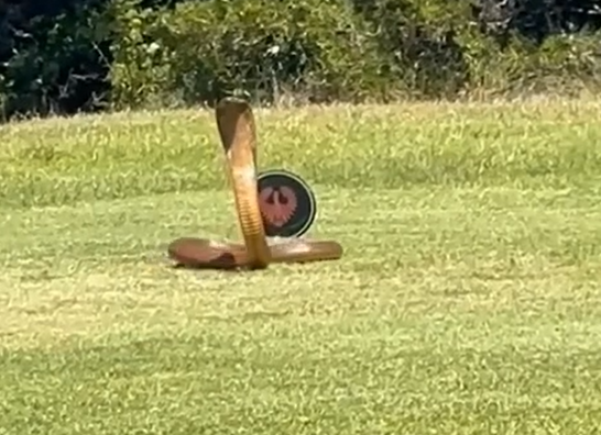 Riesiger Schockmoment für eine Golferin. Während sie gerade sich für den Abschlag bereit machte, tauchte plötzlich die giftigste Kobra auf.