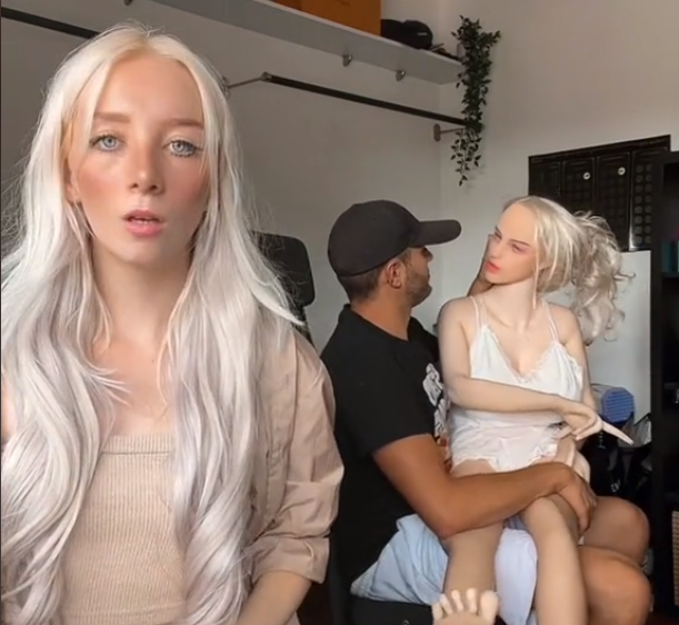 Auf einem Video ist zu sehen, wie ein Mann die Doppelgänger-Sexpuppe seiner Freundin regelrecht anhimmelt.