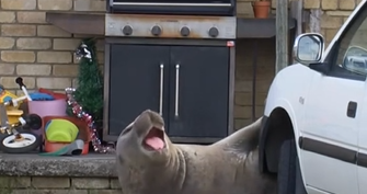 In Tasmanien, Australien, hatte Amber Harris eine einzigartige Ausrede, um die Arbeit zu schwänzen, als ein riesiger Seeelefant namens "Neil the Seal" ihr Auto blockierte.