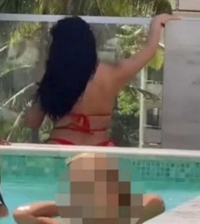 Die dunkelhaarige Frau wird für ihr Verhalten in einem Video stark kritisiert. Sie tanzt im roten Bikini und String viel zu sexy neben einem Kinderpool.