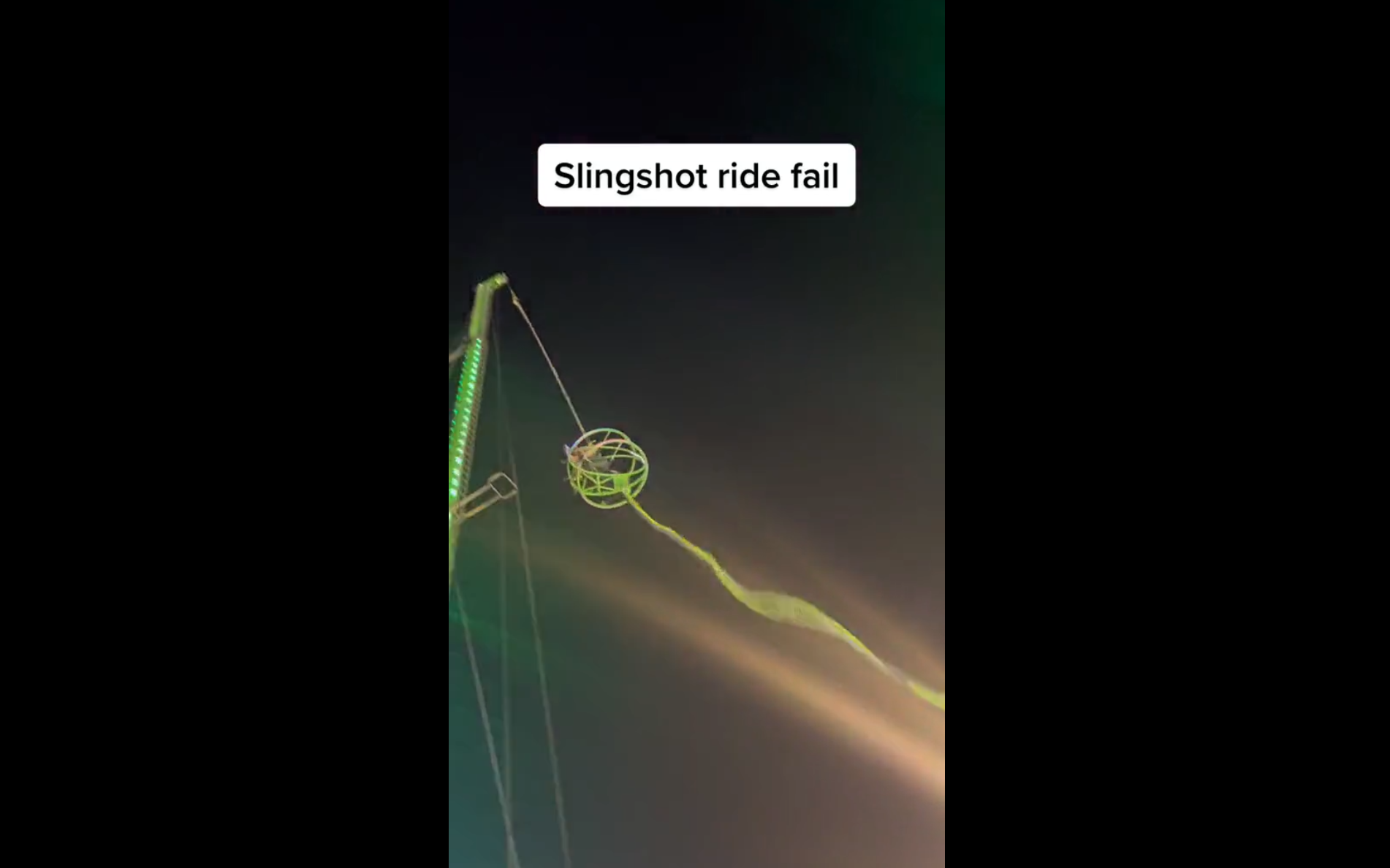 Es ist unklar, ob das Band riss, als die Kapsel in die Luft ging, oder als sie gespannt wurde. Die Kapsel schoss dann nach oben und zur Seite, bevor sie gegen einen der beiden Pfosten prallte, die die Struktur stützen. In den sozialen Medien wurden Aufnahmen des Vorfalls gepostet, und viele waren schockiert von dem, was sie sahen. Eine Person schrieb: "Du wirst mich NIE auf so einem Ding erwischen".