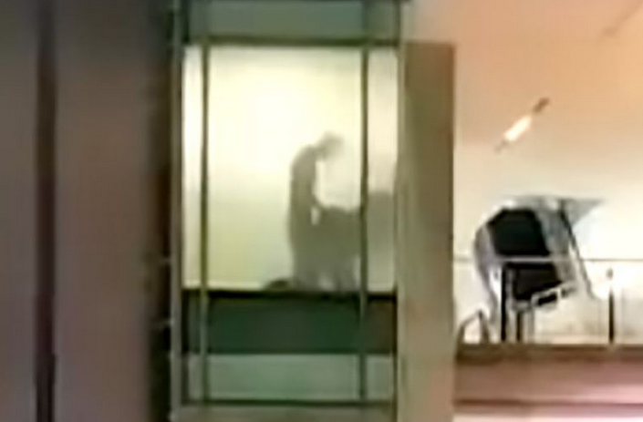 Ein Pärchen, das es diskret im Büro treiben wollte, war durch seine Silhouette auf der Straße zu sehen. Ein Passant, der vor dem Hauptquartier des Zentralen Großmarkts in Medellin, Kolumbien, einen Blick auf das Paar warf, filmte es mit seinem Handy und nannte es "Porno auf der Bürotoilette".