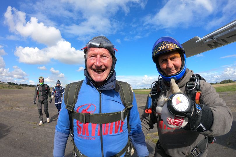 Frank Ward nahm die Herausforderung des Fallschirmspringens an, um seinen Geburtstag zu feiern und Geld für den Kauf von Rollstühlen für das Pflegeheim zu sammeln. Besonders berührend: Seine Frau lebt im Altersheim und ist auf einen Rollstuhl angewiesen.