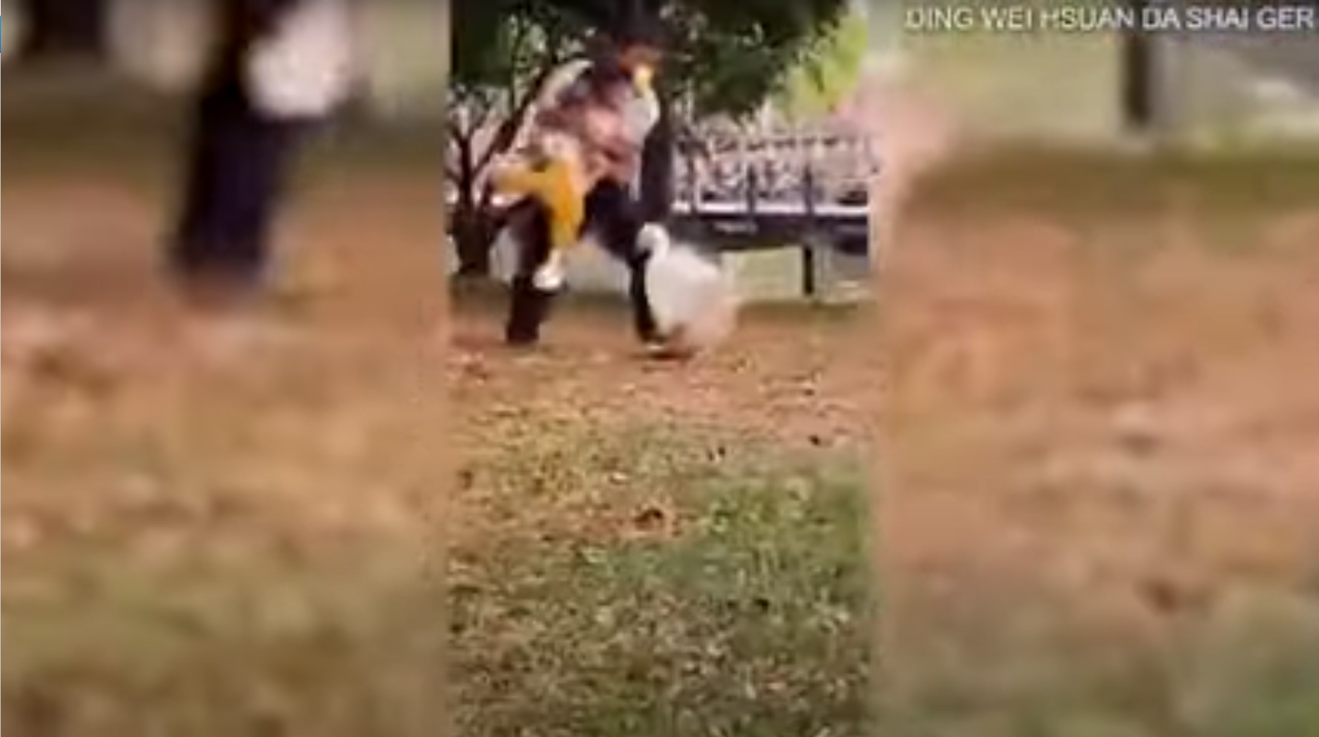 In der nähe eines Museum in Taiwan kam es zu dem Vorfall. Eine Gans beginnt damit, sich schnell einem kleinen Kind zu nähern. Der Beschützerinstinkt des Großvaters setzt ein und er greift nach seiner Enkelin, um sie zu retten. Die Gans lässt nicht nach und läuft nun dem Opa mit seiner Kleinen in der Hand nach.
