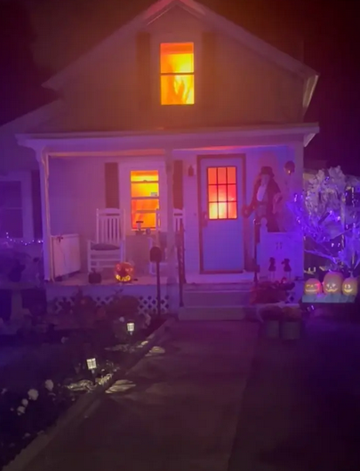 Ein Video, das der Hausbesitzer der Feuerwehr zur Verfügung stellte, zeigte die extravagante Dekoration, die das Haus wie einen möglichen Tatort aussehen ließ. Die Dekoration erweckt den Anschein, als würde das Haus wirklich brennen, denn die Flammen leuchten auf und scheinen durch die Fenster ins Innere zu schlagen.
