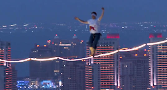 Der Sportler sprach auch über die ungewöhnlichen Wetterbedingungen, mit denen er konfrontiert wurde, wie z. B. übermäßige Hitze und starke Winde, die er als "keine Freunde des Slacklinens" bezeichnete. "Als Sportler bin ich immer bestrebt, mich weiter zu entwickeln und den Widrigkeiten zu trotzen. In diesem Fall waren die Hitze und der Wind ein zusätzliches Element, auf das ich reagieren und mit dem ich spontan umgehen musste, während ich auf der Slackline war", erklärte der Sportler.