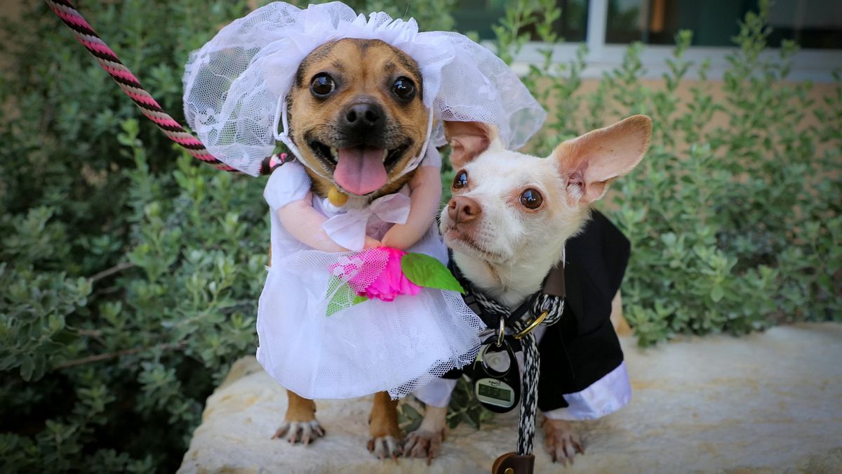 Die beiden Hunde Peanut und Cashew haben im Tierheim der San Antonio Humane Society in einer Miniaturkapelle geheiratet. Nun wird nach dem passenden Platz für die Flitterwochen gesucht.