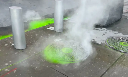 Am Donnerstag wurde eine leuchtend grüne Flüssigkeit auf den Straßen von New York City gesichtet. Die Flüssigkeit sickerte aus Kanalisationsgittern und einem Gullydeckel in der Nähe des World Trade Centers in Lower Manhattan.