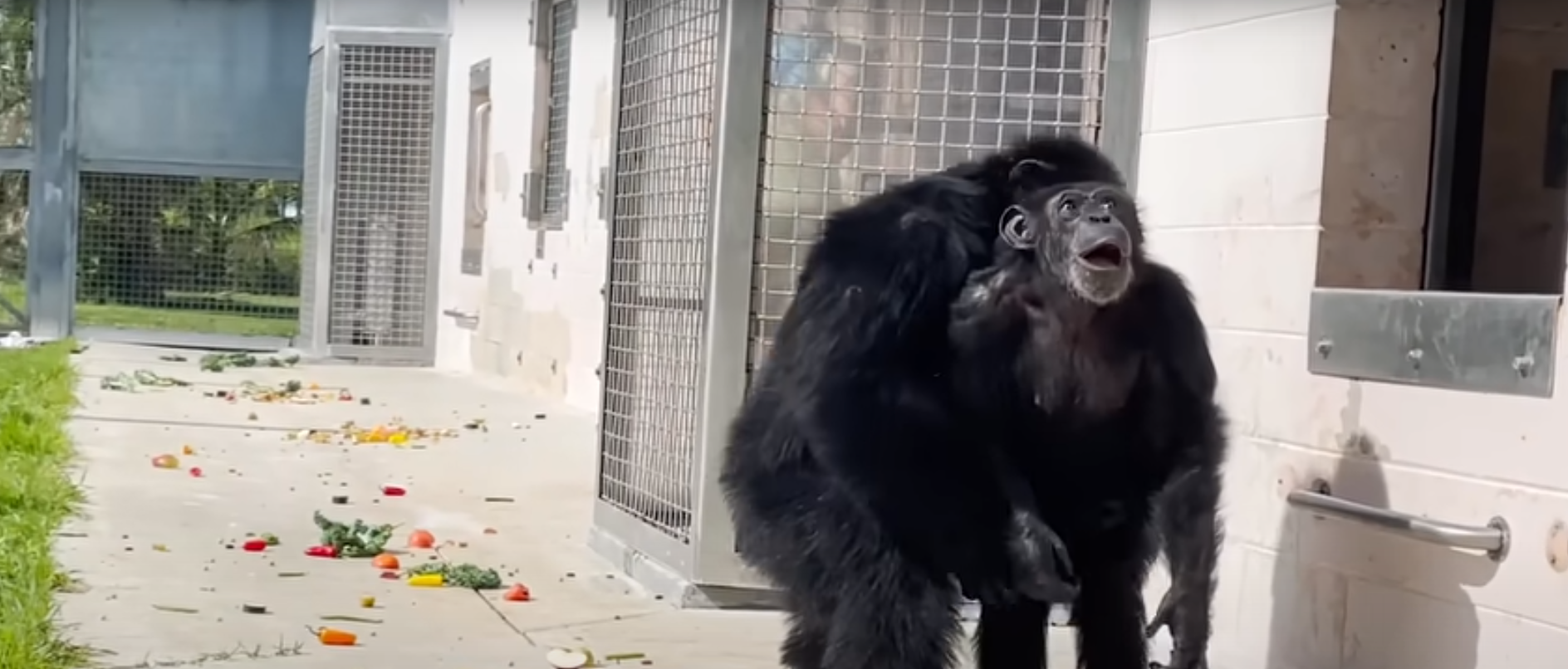 Nachdem sie unter qualvollen Bedingungen in einem Labor aufwuchs, fand sie endlich Zuflucht in der Affen-Auffangstation des Vereins "Save the Chimps" in Florida. Dort wurde sie behutsam in die Gemeinschaft integriert und durfte schließlich das Gehege betreten.