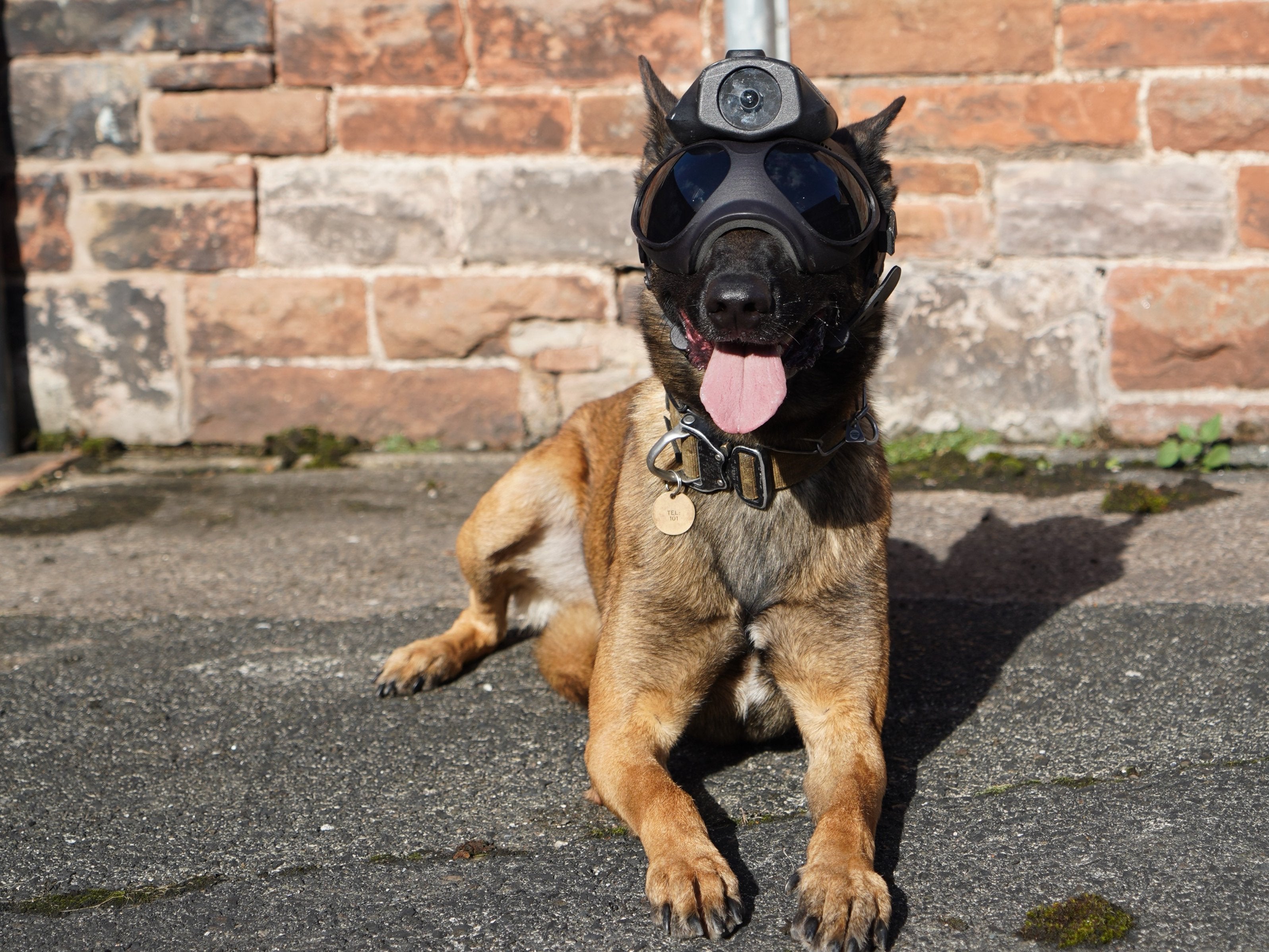 Halb Hund, halb Roboter. Ein extra für Hunde angefertigter Helm ermöglicht es den Vierbeinern, noch nützlicher für polizeiliche Einsätze zu sein.