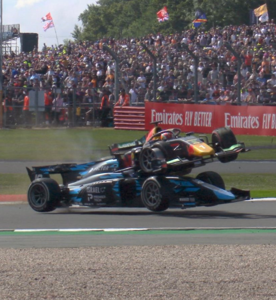 Im Rahmen des F1-Rennens in Silverstone kam es beim F2-Hauptrennen zu einem Horrorcrash, den der Israeli Roy Nissany wohl nur durch den Kopfschutz Halo überlebte.