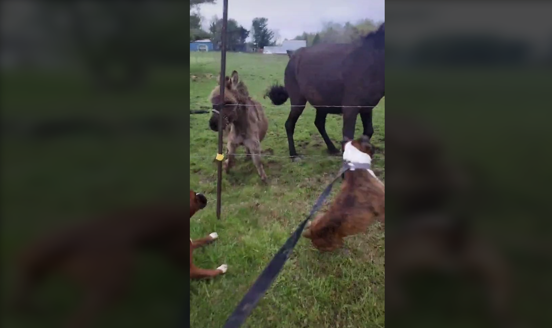 @nashrose18 Poor Izzy got shocked...and the Donkey laughed at her.@_hailey_ann_rose_ @avengedx06 #donkey #boxer #fyp #shock #electricfence #laughing #dog ♬ original sound - Sara Rose
