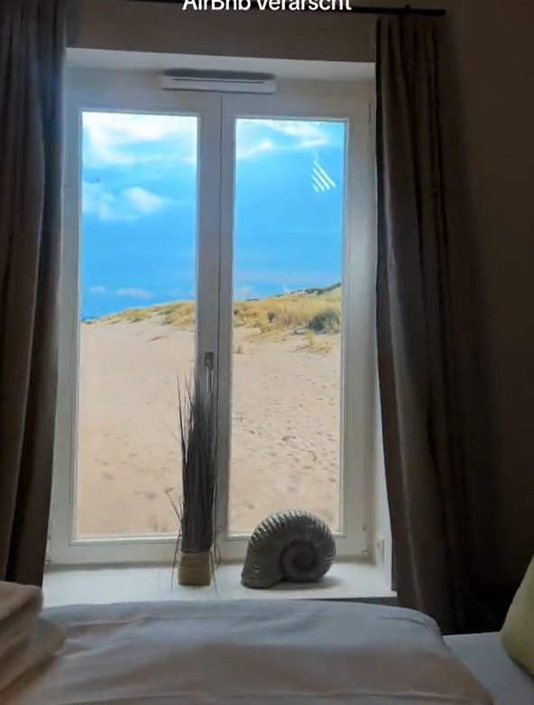 Statt dem erhofften Traumausblick auf Strand und Dünen gab es für die Influencerin einen Aufenthalt im Keller. Der auf Airbnb beworbene Fensterausblick entpuppte sich nämlich als Poster.