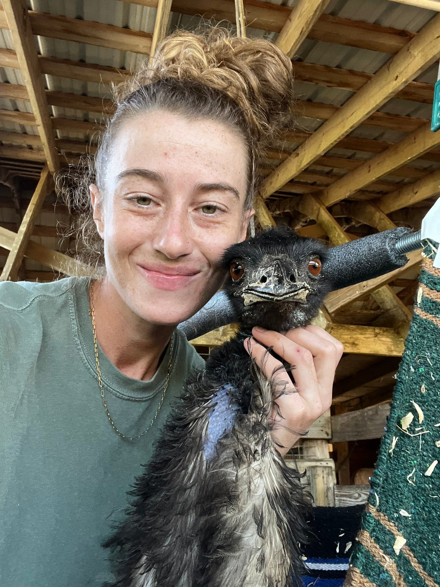 Aktuell schläft die 29-jährige rund eine Stunde pro Tag, um sich um ihren Emu kümmern zu können. Dieser kann durch schwere Nervenschädigungen nicht mehr selbständig essen und trinken, weshalb sie ihn per Hand füttern muss. Alle zwei Stunden bekommt er von seiner besorgten Halterin eine subkutane Injektion mit Flüssigkeit.