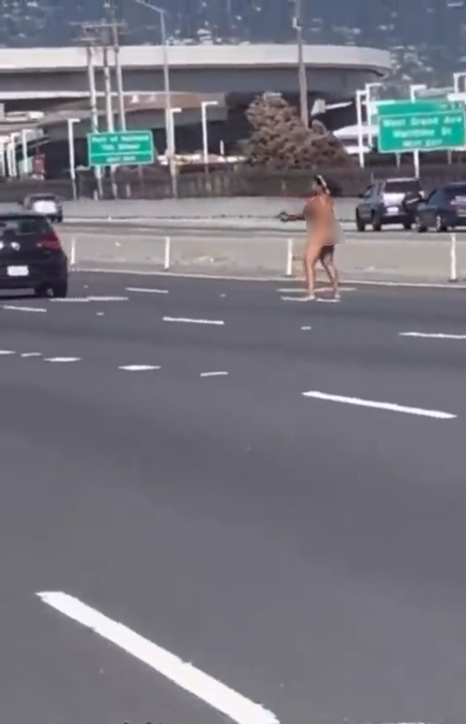 Naked woman points a gun and shoots at random people on the Bay Bridge freeway in San Francisco, California yesterday pic.twitter.com/QTbVKYhvqj