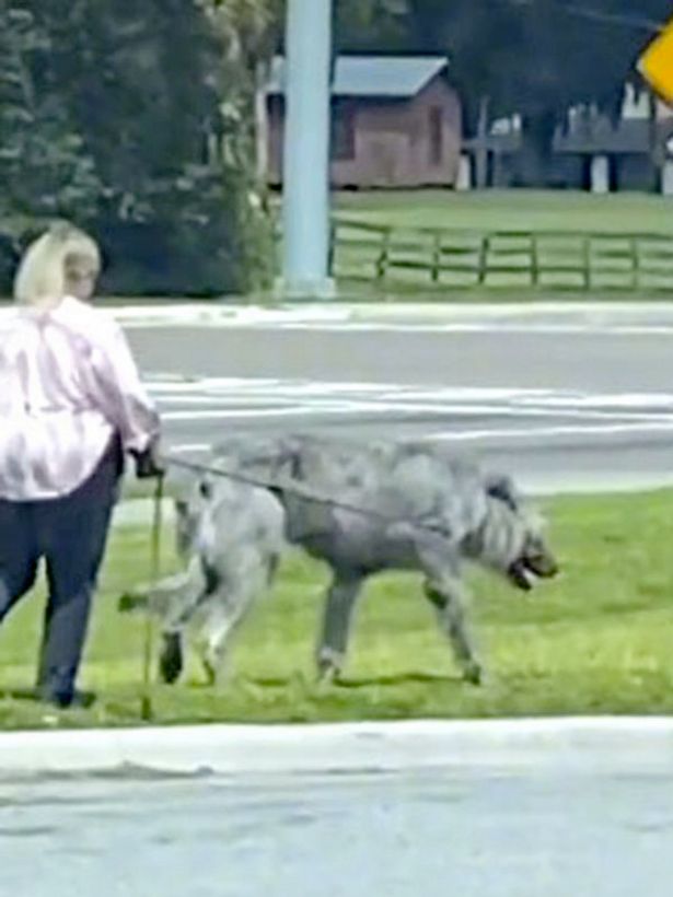 Eine Tierhalterin hat Passanten fassungslos gemacht, nachdem sie dabei gefilmt wurde, wie sie mit einem riesigen grauen Tier die Straße entlanglief. Die Frau, die in Hardee County, Florida, gesichtet wurde, schien von der Größe des Tieres, das ihr bereits auf allen Vieren bis zur Hüfte reichte, nicht beunruhigt zu sein. Ganz im Gegenteil, sie hatte das Tier sicher an der Leine.
