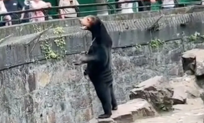 WATCH: ???? A viral video of a black sun bear at the Hangzhou Zoo in China's Zhejiang province has some netizens convinced that it is a human in disguise. The zoo has since spoken out to quell the rumours, maintaining that it is "definitely a real animal". pic.twitter.com/hzHOZSnLPT