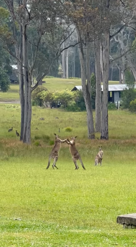 Eine Hochzeitszeremonie wurde vorübergehend unterbrochen, als zwei Kängurus in Jervis Bay, New South Wales, am Sonntag, den 13. November, miteinander kämpften. Auf einem Video, das von dem Komiker und Radiomoderator Mitch Churi aufgezeichnet und kommentiert wurde, ist zu sehen, wie sich die Tiere mit Tritten und Schlägen bekämpfen, während die Hochzeitsgäste zusehen.