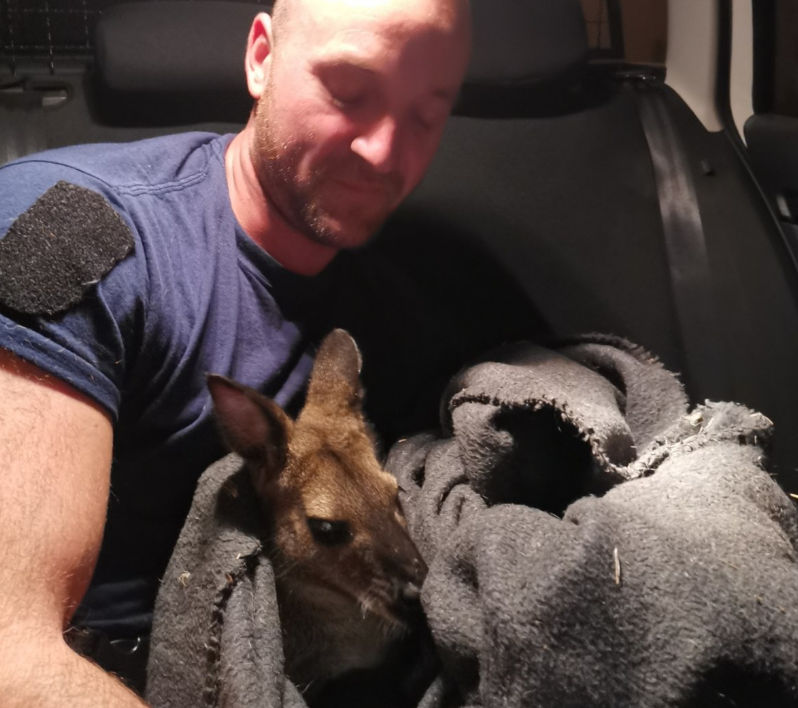 Über fünf Kilometer mussten die Beamten das ungewöhnliche Tier verfolgen, um es schließlich in eine Decke einwickeln zu können.