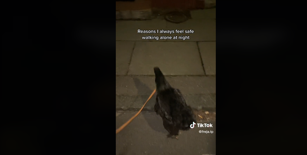 Eine Frau hat die Follower in Staunen versetzt, nachdem sie ein Video geteilt hat, in dem sie nachts mit ihrem Huhn an der Leine spazieren geht. Freja, die online als @freja.tp postet, erhielt mehr als 2,3 Millionen Likes für das Video, in dem sie mit einem Huhn auf dem Bürgersteig im Dunkeln herumlief. Im Text über dem Clip behauptete Freja, das Tier sei der Grund, warum sie sich nachts sicher fühle, allein spazieren zu gehen.