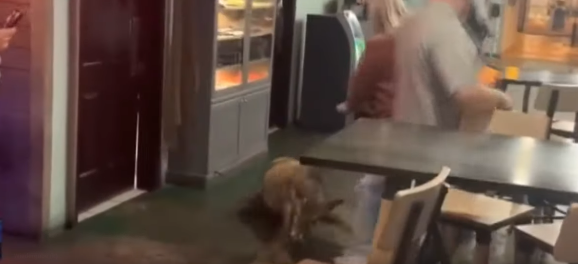Währenddessen reagierten die Restaurantbesucher höchst unterschiedlich: Manche ließen sofort ihre Mahlzeiten zurück und sprangen erschrocken zur Seite, andere ergriffen die Gelegenheit, dieses unerwartete Ereignis festzuhalten und filmten das ungewöhnliche Schauspiel mit ihren Handys.