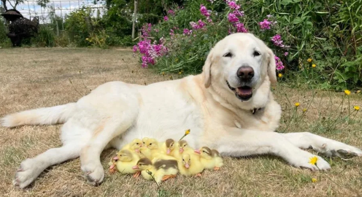 15 kleine Enten haben einen ungewöhnlichen Ziehvater. Der Labrador Fred adoptiert bereits zum zweiten Mal verwaiste Küken.