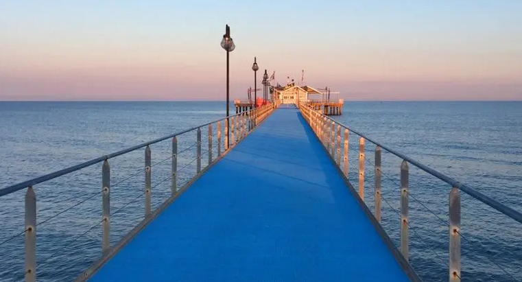 Die 58 Meter Steglänge sind nun aber fertiggestellt und sollen für alle Strandbesucher per barfuß zu betreten sein. Dafür sollen die Glasfaserpaneele sorgen. Ein Leichtgewicht ist die Konstruktion nicht, sie kommt auf 16 Tonnen.