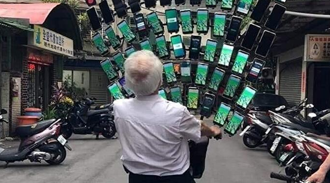Chen San-yuan, der taiwanesische 'Pokémon Go-Opa', hat sein Fahrrad in eine neue Form gebracht: Er ist nun in der Lage mit 64 Hanyds gleichzeitig Pokemon zu fangen.