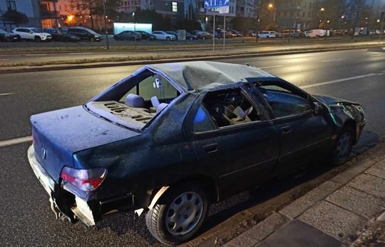"Es gibt Situationen, die nicht so sehr überraschend sind, sondern sogar erschreckend", gestanden die Polizisten laut Polsat News. Auf der offiziellen Polizei-X-Seite wurden am Samstag Fotos des betagten Gefährts veröffentlicht. Ein dunkelblauer Peugeot, gezeichnet von zahlreichen Mängeln: zerknautscht, mit einem schwer beschädigten Dach, zerbrochenen Fensterscheiben und eingerissenen Stoßstangen.