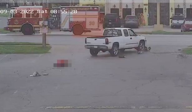 Man sieht, wie ein Mann in einem elektrisch betriebenen Rollstuhl über den Parkplatz fährt, als ein weißer Pick-up-Truck in das Bild rast. Das Opfer hebt die Hand und winkt dem Fahrer, um ihm zu signalisieren, dass er langsamer fahren soll. Doch der Fahrer überfährt ihn, zerrt ihn vom Parkplatz an den Straßenrand und fährt weiter.