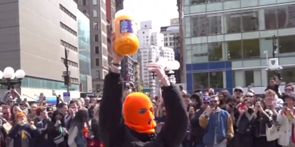 Hunderte erstaunte Schaulustige versammelten sich am vergangenen Samstag im Union Square Park in Manhattan, um einen anonymen 22-Jährigen in einer orangefarbenen Maske dabei zu beobachten, wie er einen ganzen Kübel Käsebällchen verschlang.