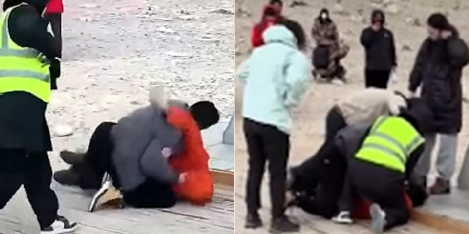 Ein Video dokumentiert, wie zwei Touristen auf der Aussichtsplattform des höchsten Berges der Welt in eine handgreifliche Auseinandersetzung gerieten.