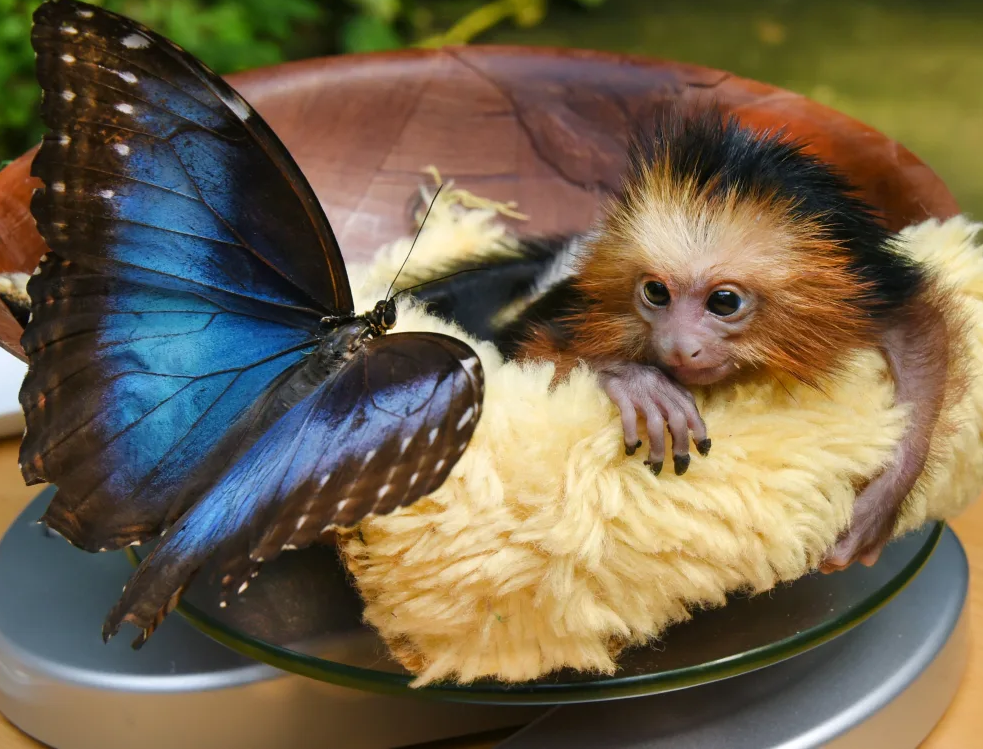 Im Wittenberger Schmetterlingsparks sind aktuell nicht die Schmetterlinge die Zuschauermagneten, sondern ein Mini-Äffchen.