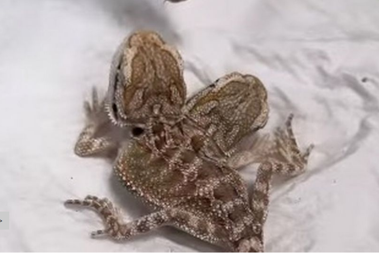 Es ist ein Bild, welches man nicht alle Tage sieht. Eine Bartagame wurde mit zwei funktionsfähigen Köpfen geboren, zudem können beide Köpfe essen aufnehmen.