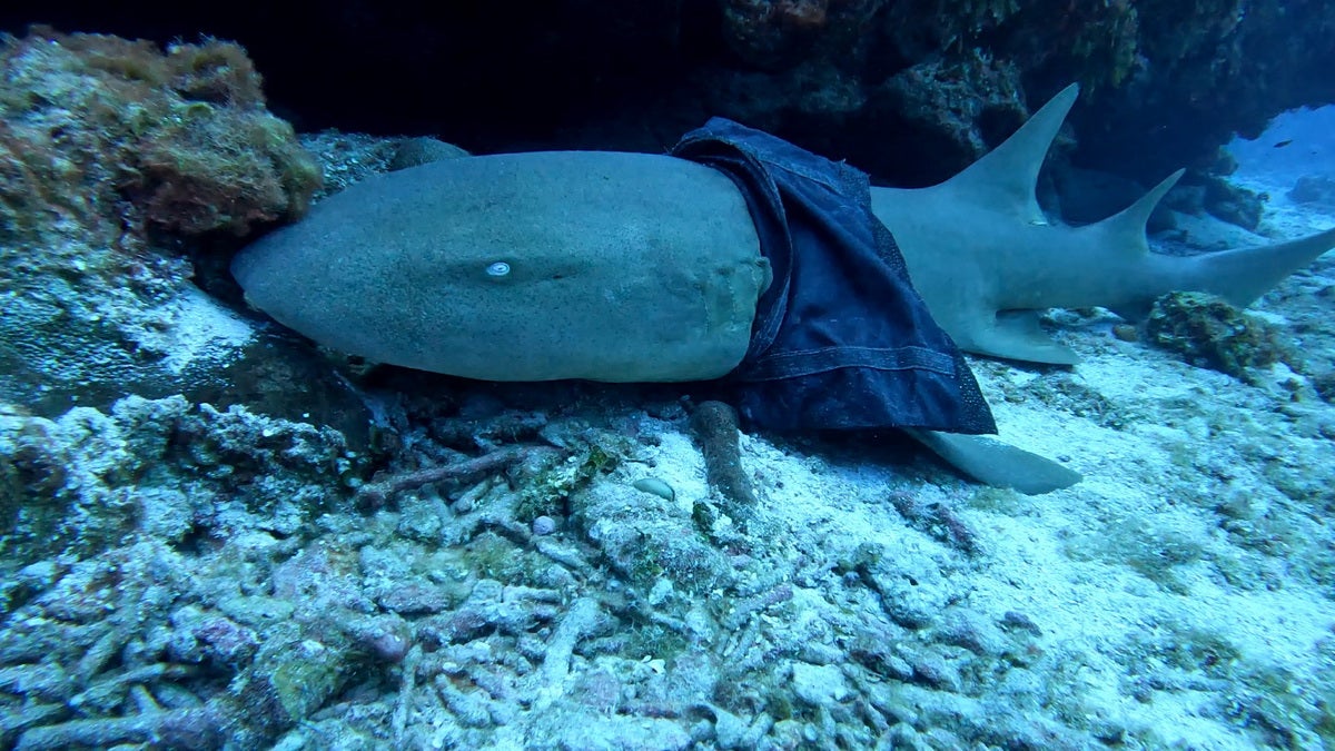 Bei einem Tauchgang entdeckte Brad Nelson einen Atlantischen Ammenhai, der offenbar einen Jeansrock für Frauen um seinen Körper trägt. Was zwar unterhaltend aussieht, ist doch relativ ernst. Das Kleidungsstück könnte die Kiemen des Haies verdecken und ihn dadurch ersticken.