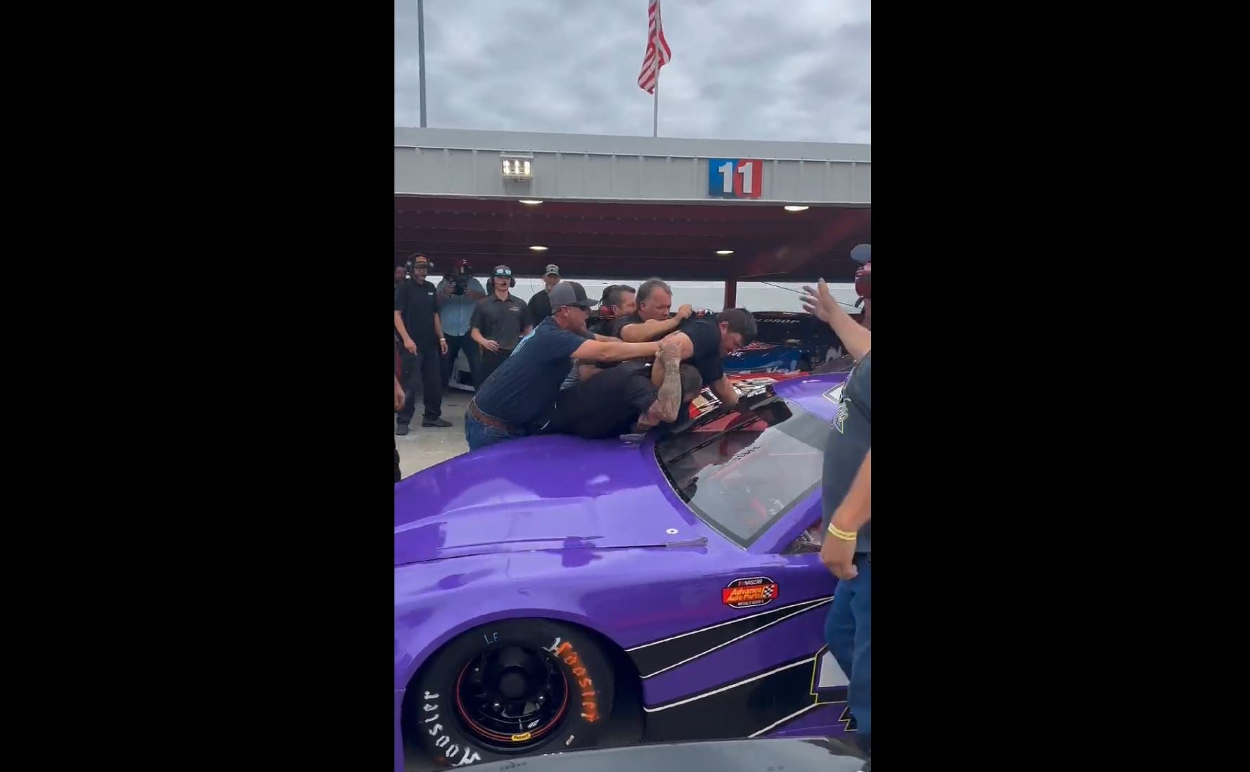 ???? On-track emotions boil over in the pits!@NASCARRoots | @MartinsvilleSwy