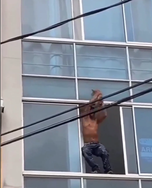 Die Bilder sind nichts für schwache Nerven. Ein Mann rettete eine Katze aus luftiger Höhe, die sich gerade noch am äußeren des Hauses festhalten konnte.