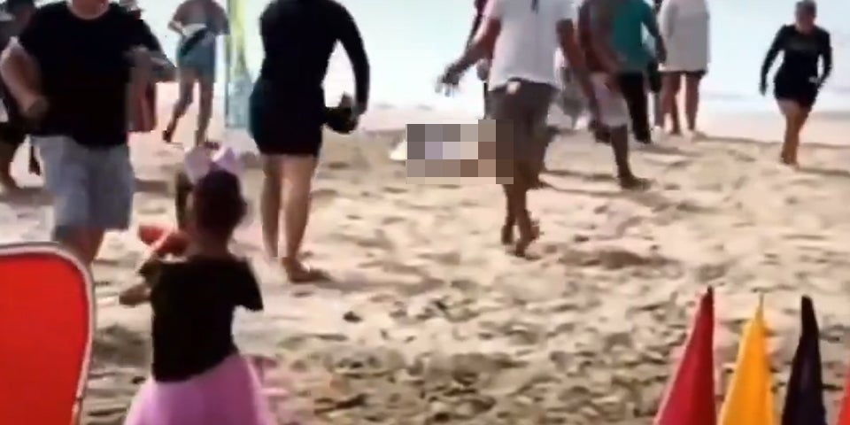 Ein erschütterndes Video, das in den sozialen Medien kursiert, zeigt Rettungskräfte, die die verletzte Frau ans Ufer tragen.