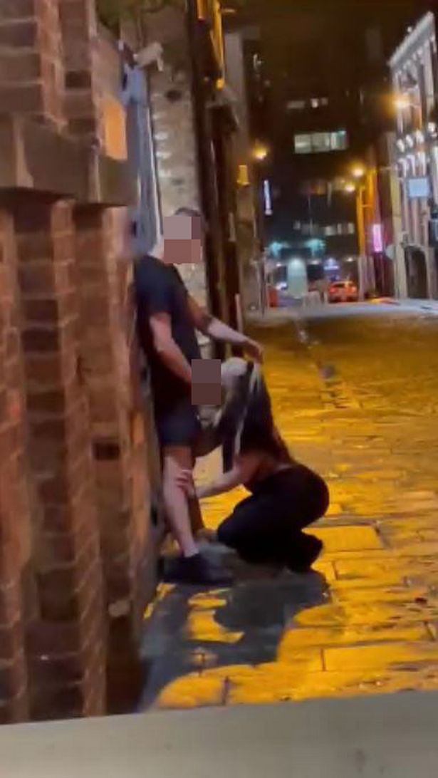 Joe Firby, 23, war in einem Video mit der vierfachen Mutter Kelly Cousins - einem 35-jährigen angeblichen OnlyFans-Star - zu sehen, in dem sie auf dem Concert Square in Liverpool auf die Knie ging und den Mann sexuell befriedigte.