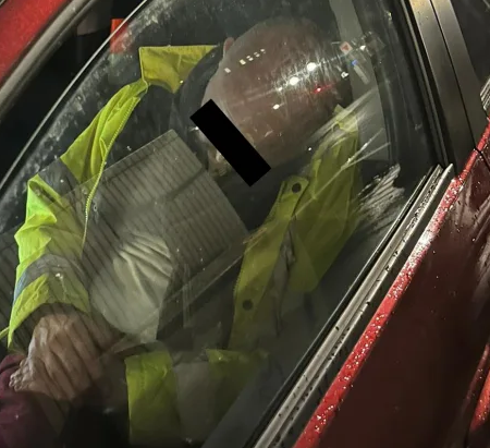 Gegen 5.15 Uhr wurde der Sicherheitsmann auf dem Fahrersitz eines roten Mitsubishi vor dem Chanel-Geschäft entdeckt. Neben ihm befand sich ein offener Laptop auf dem Beifahrersitz, die Fensterscheibe war leicht geöffnet. Offenbar war der Wachmann so sehr in süße Träume versunken, dass er nicht bemerkte, wie er fotografiert wurde.
