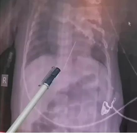Eine Röntgenaufnahme enthüllte das Unglaubliche – eine vier Zentimeter lange Nadel hatte sich im Herzen des kleinen Mädchens verfangen. Diese scharfe Nadel hatte sich offenbar einen gefährlichen Weg durch den Magen des Babys gebahnt und war im linken Ventrikel stecken geblieben, der lebenswichtigen Herzkammer, die den Körper mit Sauerstoff versorgt.