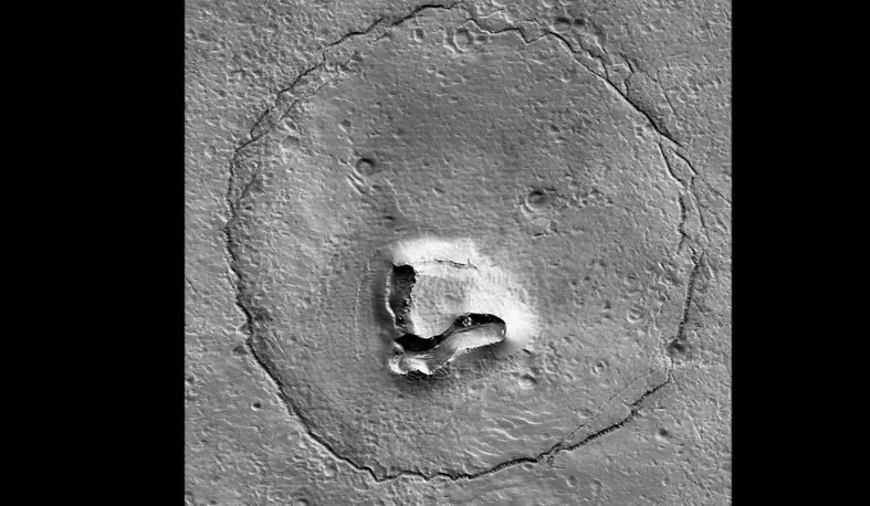 Mit einer ganz besonderen Aufnahme vom Mars hat die US-Raumfahrtbehörde NASA überrascht: Sie veröffentlichte ein Foto von einer geologischen Formation auf der Oberfläche des Roten Planeten, welche an ein lächelndes "Bärengesicht" erinnert.