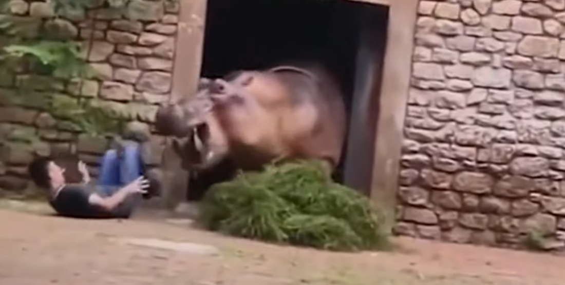 Das Lustige: Der rauchende Mann ließ seine Zigarette trotz des Angriffs nicht los. In einem Versuch, sich zu verteidigen, setzte der Tierpfleger seine Arme und Beine ein, um das Nilpferd in Schach zu halten. Beeindruckenderweise wich das Nilpferd vorübergehend zurück und wandte sich wieder seinem Grünzeug zu. Doch als der Tierpfleger das Gehege verlassen wollte, griff das Nilpferd erneut an. Nur durch schnelle Reflexe und eine Portion Glück konnte er sich in letzter Sekunde in Sicherheit bringen.