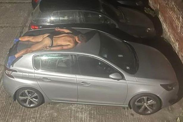 Ein Mann ist erstaunt, als er einen betrunkenen Nachtschwärmer "fast nackt" und schlafend auf dem Autodach findet.